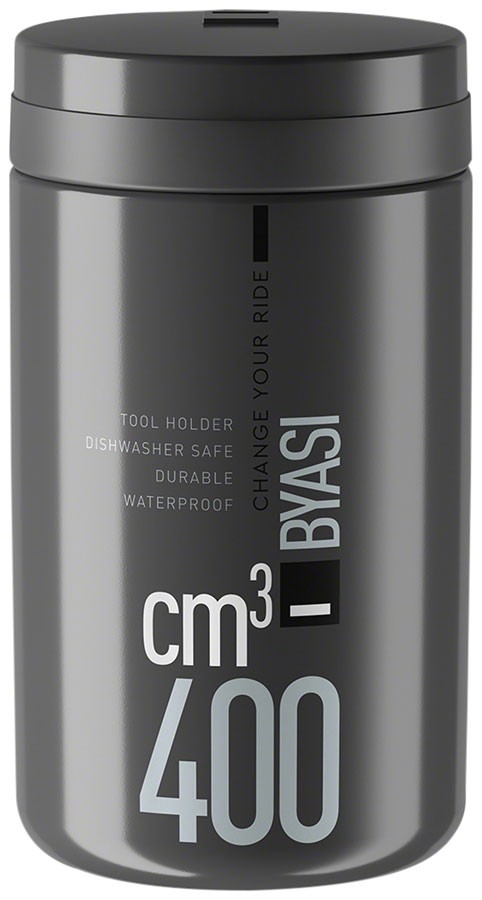 Elite SRL Byasi Bottle Cage Storage Keg - .4 L Dark Gray. Elite Compatible with any bottle cage Byasi ensures the room you need to easily store your tools such as mobile phone cards masks gloves keys sunglasses powerbanks or small maintenance objects while you’re riding your bicycle.Provides room for the essentials and keeps them safe secure and dry