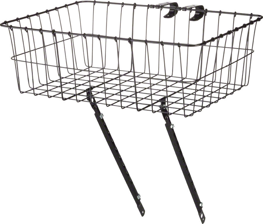 Wald 1392 Front Basket: Gloss Black LG. Steel wire front baskets that provide durability with a classic aesthetic.Extended handlebar clamps allow greater clearance for shift and brake cables